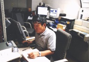 東京シネマ新社で「校長先生」を編集中のラウレンティー・ソンと岡田一男