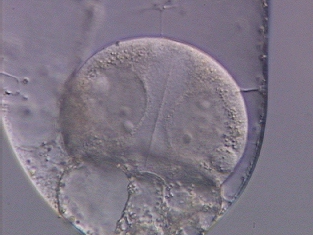 ギンナン内部での花粉管の中で作られる精子形成の最終段階を初めてタイムラプス記録に成功した。とりわけ精子の先端に渦巻き状に配列される繊毛の様子は圧巻。