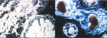 解離した細胞は単独では生きられません。集合して細胞塊になり、細胞分化を経て再ぴ海綿の体を作ります。